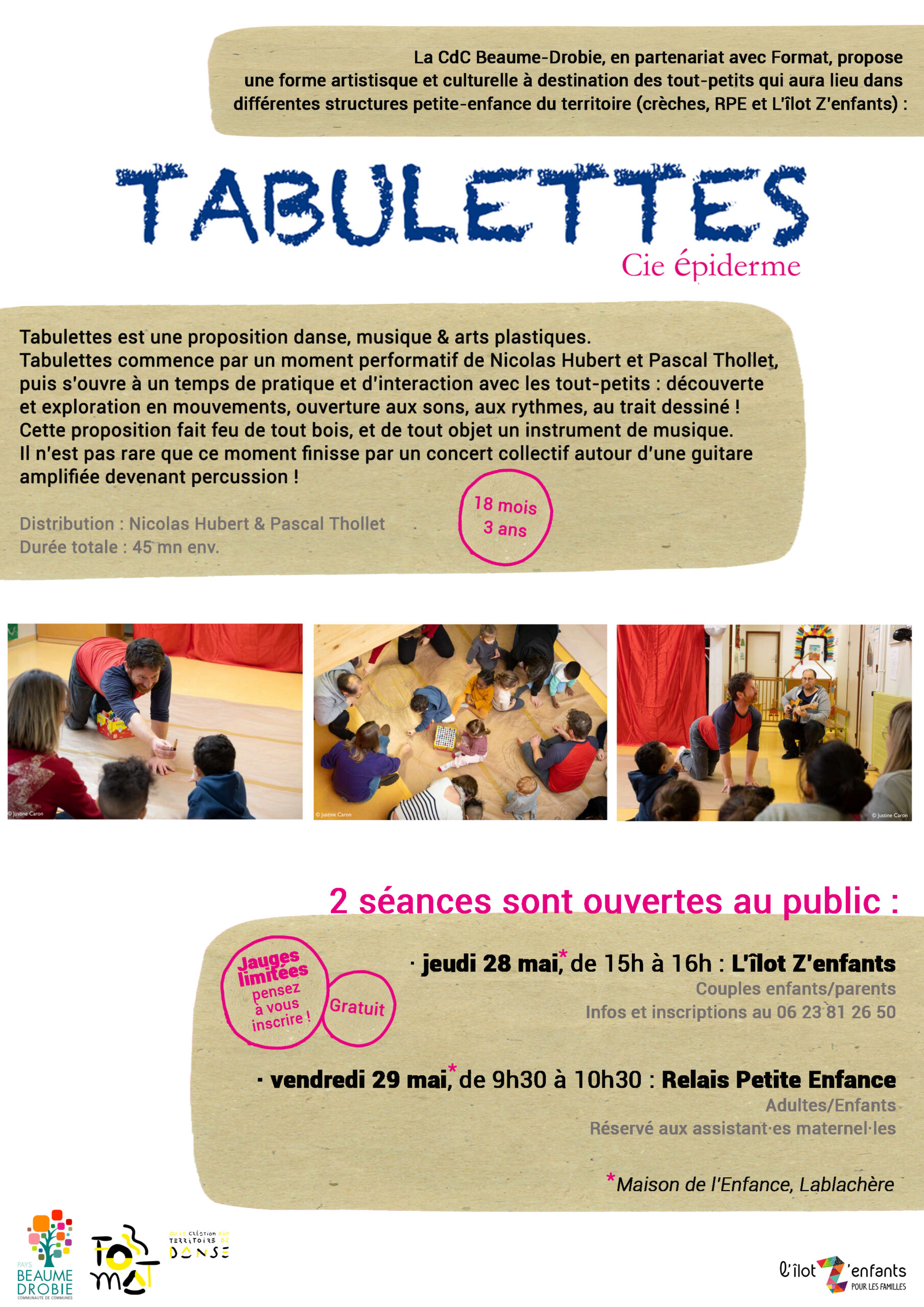 Nous avons la joie de vous faire une proposition artistique hors-programme, à destination des enfants de 18 mois à 3 ans, accompagné·es d’un·e adulte !